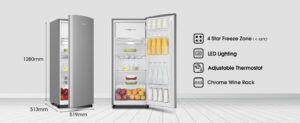 Hisense RR220D4ADF 52cm Freestanding Retro Fridge – 149 litre capacity – Auto Defrost – Wine Rack – Silver – F Rated [Energy Class F]