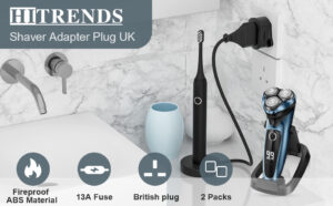 Shaver Adapter Plug UK with 13A Fuse 2 Packs, HITRENDS 2 Pin to 3 Pin Adapter Plug UK Toothbrush Plug Socket Two Prong to Three Prong Adapter Travel Adaptor for Bathroom Electric Shaving Razor, Black