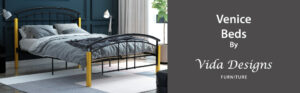 Vida Designs Venice Double Bed, 4ft6 Bed Frame Metal & Wood Solid Headboard Low Foot End Bedroom Furniture, Black