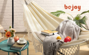 BEJOY Double Hammock with Stand,Extra Large Cotton Cloth and Adjustable Heavy-Duty Steel Frame for Indoor Outdoor Garden Camping Swing for Adult Kids,Camping Patio Bed Swing