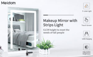 Meidom Hollywood Makeup Mirror with Lights, Lighted Vanity Dressing Table Mirrors for Tabletop or Wall-Mounted, Smart Touch Screen, with USB Charging Port, 61 x 43 cm