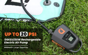 Dskeuzeew 20PSI Electric SUP Air Pump with 9000mAh Rechargeable Battery, Paddle Board Pump Intelligent Dual Stage Inflation, Auto-Off, Deflation, High Pressure Portable Air Pump with 12V Car Connecto