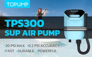 TOPUMP 7500mAh Rechargeable SUP Pump TPS300, 20 PSI Electric Paddle Board Pump with AC/DC Battery, Dual-Stage Auto Shut Off For ISUP, Kayak