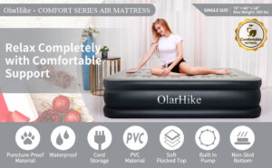 OlarHike Single Air Bed, Inflatable Bed with Built-in Electic Pump, Self-inflating Guest Airbed with Soft Flocked Surface, Inflatable Air Mattress For Camping or Home Use, 198x102x46cm(Black).