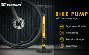 VOGORA Bike Pump with Pressure Gauge, Bicycle Pump with Presta & Schrader Valve, Portable Hand Tire Floor Pump Foot Inflator High Pressure 160PSI for all Bikes, Cars, Road Mountain Bikes and Balls