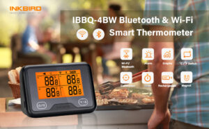 INKBIRD Wi-Fi Bluetooth Barbecue Thermometer IBBQ-4BW Rechargeable Wireless BBQ Thermometer with 4 Probes Temp Graph Calibration Timer Temp Alarm Digital Meat Thermomete