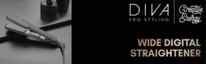 Diva Pro Styling Wide Digital Straightener and Styler with Macadamia Argan Oil Keratin Infused Ceramic Plates PRO218, Black, 1 Cou