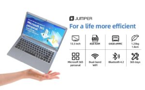 Jumper Laptop 13.3 Inch Full HD 1920 x 1080 IPS Office 365 4GB RAM 128GB ROM Windows 10 Intel Celeron Processor Slim Laptop Dual Band 5GHz WiFi,Supports 256GB TF Card and 1TB SSD Expansio