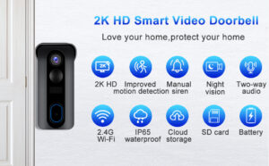 [2022 Upgraded] Video Doorbell Camera 2K HD WiFi Smart Wireless Camera Doorbell with Indoor Chime, Improved Motion Detection, 2-Way Audio, Night Vision, 166° Angle and SD Card Pre-Installed