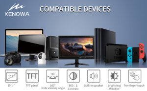 1.Widely used for game monitors for PS3 / PS4 / Xbox 360 / Xbox one / TV / HDTV / projector etc. via HDMI Plug & Play interface. 2.Portable PC Display: with VGA / HDMI /AV /BNC and USB Flash Drive video Signal transmission interface ( Note : USB Port support MP3 MP4 Format ,do not support powered ) 3.[Travel and business] The shell is made of fully integrated Plastic ,Weight:0.7KG, Great portability of travelers and frequent business. Note : The Touch function only supports 3 Systems: Microsoft, Android and Raspberry Pi , In addition, Because the touch function of the display is located on the USB interface, your device also needs to have USB and HDMI interfaces directly connected to your device such as your raspberry pi etc device with USB and HDMI interface , If not, then it does not support the touch function. Monitor Interface: 1-BNC Interface 1-USB Interface [Support USB Flash Drive Interface (does not support power)] 1-Audio Input 1-Audio output 1-AV Interface 1-VGA Interface 1-HDMI Interface 1-Connect Touch USB Interface Monitor Size: 250x160mm Screen Size:215x135mm Thickness:35mm 1.The monitor supports a 75x75mm wall-mounted hole bracket, which can be placed in a variety of scenes, 2.Extended Mode,Split Screen operation , work and enjoy life two display screens for different purpose, 3.mirror mode,Display the same ,picture on both screen. Resolution 1920X1080P 1366X768P 1920X1080P 1366X768P 1920X1080P TouchScreen ✓ Screen IPS Screen TFT Screen IPS Screen TFT Screen IPS Screen Viewing Angle 178° 160° 178° 160° 178° Video Port HDMI / VGA HDMI / VGA Type-C / HDMI HDMI / VGA Dual HDMI Check Offer Price Weight: 1.34 kg Dimensions: 34.49 x 28.8 x 6.81 cm; 1.34 Kilograms Brand: Kenowa Model: 800-1 -Touch-10.1 Colour: 10.1" with Touch Batteries Included: No Manufacture: Kenowa Colour: 10.1" with Touch