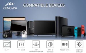 Portable Monitor, Kenowa 13.3 Inch HD Portable PC Monitor Resolution 1366 x 768 60Hz TFT Screen External Monitor with HDMI VGA for PC Computer/Laptop/Raspberry Pi/PS3/PS4/PS5-XBOX