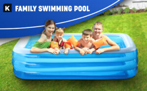 KEPLIN Large 6ft Paddling Pool for Kids & Adults – Blue & White | Inflatable with Patch Kit Included | Outdoor & Indoor Family Pool for Swimming or Paddling (6ft)