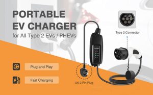 Keruida Type 2 EV Charger 10A 2.2kW, Portable EV Charger with UK 3 Pin Plug, Type 2 Charging Cable 6 Metres Electric Vehicle Charger with Single Phase, IEC 62196-2 Home EV Charging Station 220V-240V