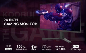 KOORUI 24 Inch Computer Monitor, FHD 1080P Gaming Monitor 165Hz VA 1ms Build-in FreeSync™, Compatible G-sync, LED Monitors with Ultra-Thin, HDMI X2 /DP, VESA Compatible, Tilt Adjustable, Eye Care 24E4