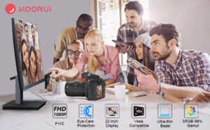 KOORUI 22 Inch Computer Monitor, 1080p FHD 75Hz Desktop Monitor with HDMI VGA Free Flicker Low BlueLight, Frameless Led Monitor for PC Home Office, Black