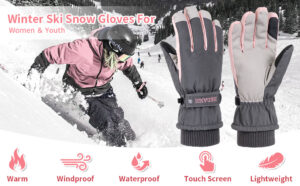 Winter Ski Gloves, -30°F Warm Breathable Windproof