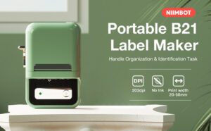NIIMBOT B21 Label Maker Machine,Bluetooth Barcode Label Printer Printing Size 20-50mm,Compatible with iOS & Android for Clothing,Jewelry,Supermarket with 1 Roll Starter White Pape