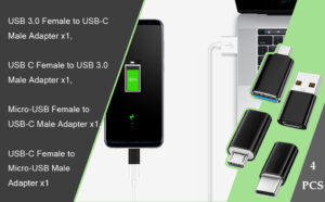 YHQZ 4 Pcs Micro USB to USB C Adapter,USB C to USB 3.0 OTG