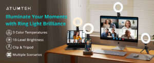 ATUMTEK Ring Light with Clip & Tripod, 5″ Video Conference Lighting Clip On Laptop Monitor, Webcam Light with 3 Dimmable Color & 10 Brightness Level for Remote Working/Zoom Calls/Live Streaming