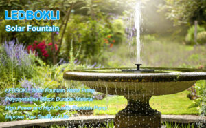 LEDBOKLI Solar Fountain Water Pump Square Solar Fountain Pump 2W Max Flow 180L/h Solar Fountain Water Pump with 4 anti-collision Bars and 7 Nozzles Perfect for Outdoor Gardens Bird Baths, Pools