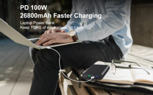 2 USB-C Ports Laptop Power Bank, PD 100W 26800mAh Quick Charge Portable Laptop Charger, Fast Charging External Battery Pack for MacBook, iPhone, Samsung, HP, Dell, Lenovo and More