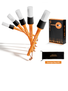 lesasas Car Detailing Brushes, 5 Pcs Different Size Car Brush, Orange Detailing Kit for Cleaning Car Wheels, Emblems, Engine Bay, Leather, Air Vents, Interior and Exterio