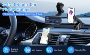 Car Phone Holder, 3 In 1 Adjustable Car Phone Mount Cradle 360° Rotation for Dashboard/Windscreen/Air Vent, Universal Mobile Phone Holder with Strong Suction for iPhone 13/12 Samsung Huawei and More