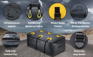 Car Rooftop Cargo Carrier Bag, longziming 425 Litres (15 Cubic Feet) Rooftop Cargo Bag, 500D Nylon Strong Roof Bags Storage with 6 Extra Heavy Duty Straps Fits all Cars 152x61x61cm