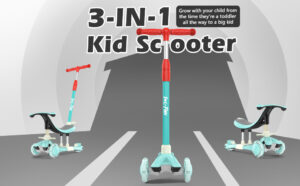 LOL-FUN 3 Wheels Scooter for Kids Ages 3-5 Boy Girl Toys 2 Year Old Gift, 3 in 1 Toddler Scooter Balance Bike & Push Scooter for Age1+, 4 Adjustable Height Childrens Scooter with Lean-to-Stee