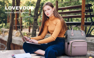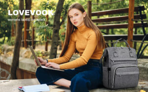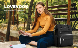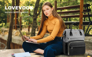 LOVEVOOK Laptop Backpack Women 15.6 inch, Work Bags for Women, School Computer Bag with USB Port for Business College Travel, Laptop Rucksack for Teacher Nurse,GreyBlack