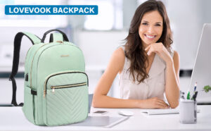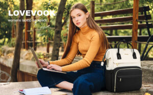 LOVEVOOK Laptop Backpack Women 15.6 inch, Work Bags for Women, School Computer Bag with USB Port for Business College Travel, Laptop Rucksack for Teacher Nurse,BeigeBlack