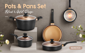 Cookware Set 9pcs Non-Stick Pots and Pans Set Ceramic Coating Frying Pan Grill Pan Sauce Pan Stockpot with Lids, Gas, Induction Compatible, Oven Safe