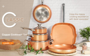 12pcs Nonstick Cookware Set, Pots and Pans Set with Stainless Steel Handles, Frying Pan Set Copper Ceramic Coating