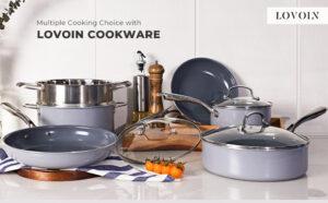 Non Stick Pots and Pans Set 5 Piece Nonstick Cookware Set with Lids, Steamer Basket, Stockpot with Lid, Saucepan with Lid, Fry Pan, Saute Pan for Daily Cooking