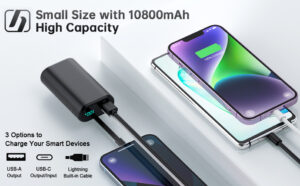HETP Power Bank 10800mAh, PD 15W 3.0A Portable Charger with Built-In Cable, 3 Outputs LED Display External Battery Compatible with iPhone 14/14 Plus/14 Pro Max/13/13 Pro Max/12/12 Pro/11/XR/XS/X/8/7/6