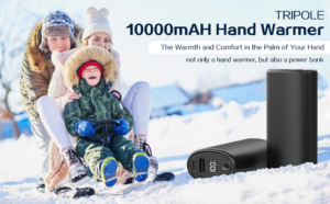 TriPole Hand Warmers Rechargeable , 10000mAh Portable Power Bank, 3 Heat Levels Electric Hand Warmer, 360°Heating Pocket Warmer, 3s Fast Heating USB Hand Warmer Reusable-Perfect for Hike, Ski, Golf