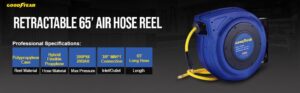 Goodyear Air Hose Reel Retractable 9.5mm x 20m Hybrid Polymer Hose Max 20BAR Commercial Polypropylene Construction w/Lead-in Hose and PVC Handle