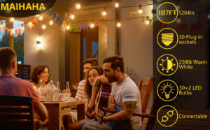 107FT Outdoor Garden LED String Lights,Maihaha 32X1W LED Bulbs Garden String Lights,Weatherproof Indoor/Outdoor Festoon Lights Patio String Lights for Garden,Backyard,Terrace,Party,Wedding Warm White [Energy Class A+++]