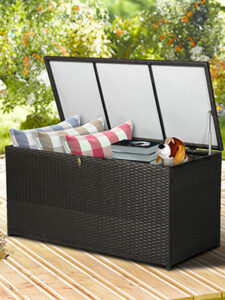 Outsunny Rattan Storage Box Outdoor Indoor Wicker Cabinet Chest Garden Furniture 118 x 54 x 59cm – Dark Brow