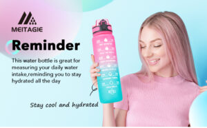 MEITAGIE 1 litre Motivational Sports Water Bottle with Straw