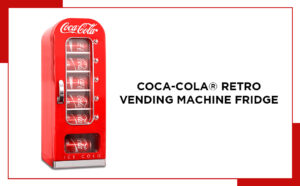 Coca-Cola Retro Vending Machine Style 10 Can Mini Fridge with Display Window, AC/DC Portable Beverage Cooler for Soft Drink Cans, Includes 12V and AC Cords, for Home Office Dorm Cottage, Red [Energy Class A]