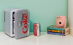 Coca Cola Diet Coke Portable 6 Can Thermoelectric Mini Fridge Cooler/Warmer, 4 L/4.2 qt, Grey, 12V DC/110V AC for home, dorm, car, boat, beverages, snacks, skincare, cosmetics, medication,DC04 AZ [Energy Class A]