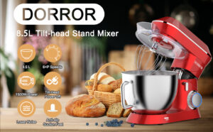 8.5L Stand Mixer, DOBBOR 1500W 7 Speeds Food Mixers for Baking, Bread, Cookies, Cake, Electric Kitchen Mixers with Dough Hook, Whisk, Beater, Splash Guard & Mixing Bowl – Dishwasher Safe (Red)