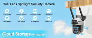 GENBOLT WiFi Security Camera Outdoor with PoE, Dual Lens Home Surveillance IP Camera CCTV with Color Night, Auto Tracking Human Detection Pan Tilt Digital Zoom Spotlight Camera
