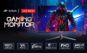 CRUA 24.5 Inch 180hz Curved Gaming Monitor, FHD 1080P Frameless Computer Monitors, Support AMD freesync Low Motion Blur, Eye Care, DisplayPort, HDMI, Compatible Wall Mountable Installs-Black
