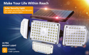 morpilot Solar Lights, 214LED 1500lM Solar Security Light, 360°Wide Angle Illumination with 3 Modes, IP65 Waterproof Motion Sensor Outdoor Lights for Yard Garage Pathway
