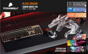 TITANWOLF – XXL Mouse Mat – Mouse Pad 900 x 400 x 3mm –Speed Gaming Mouse Pad – Extra Large MousePad – Table Mat Large Size – Improved Precision and Speed – Design Black Drago