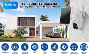 Solar Security Camera, MYPIN Outdoor Wireless Battery Operated PTZ Security Camera Ring Camera Home No WiFi Camera with 1080P Full HD Color Night Vision Motion Detection, 2-Way Audio, Siren Alarm
