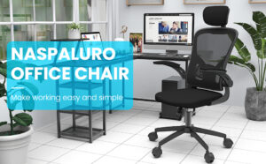 aspaluro Office Chair with Back Support, High Back Ergonomic Computer Chair with 90° Flip-Up Armrest, Adjustable Headrest, Swivel Mesh Chair for Home and Office Use