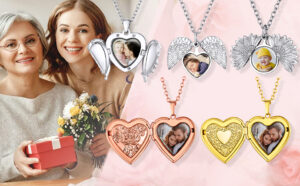 Supcare Heart Locket Necklace for Women Girls Vintage Floral/Rose Flower/Angel Wing/Sunflower18K Gold/Rose Gold/Platinum Plated Memorial Jewellry Gift, with Gift Box